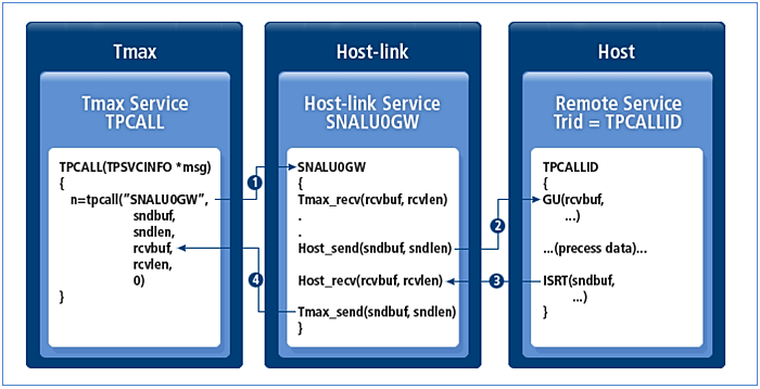 Host-link는 환경설정 파일에 정의된대로 Tmax 시스템의 서비스를 호출한다.
