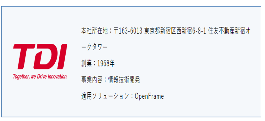1968年の創業以来、ソフトウェア開発、情報処理サービス、データセンターサービス、組み込みソフト開発などを事業として展開する情報技術開発(以下、tdi)。独立系SIer企業であるtdiでは、Tmax OpenFrameを活用したホストマイグレーションの実績があり、その経験とノウハウを生かしたソリューションの提供を強力に推進している。